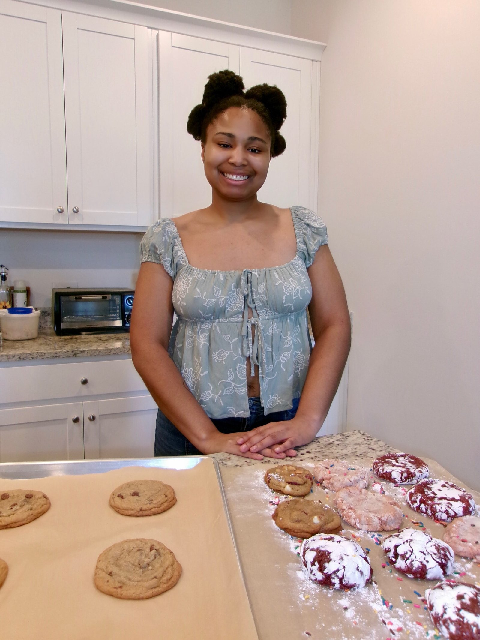 Baking has been a part of my heart for as long as I can remember. I started in middle school, making treats for my friends and classmates, but last year, it became so much more. At the end of 2024, my best friend’s big brother—my bonus big brother, Aaron Myles Smith—passed away. Aaron loved food and cooking, and after his passing, I turned to baking as a way to cope. In the week between his passing and the funeral, I baked over 100 cookies to bring comfort and joy to friends and family. It helped me heal, and I haven’t stopped baking since. – Jazara N. Founder